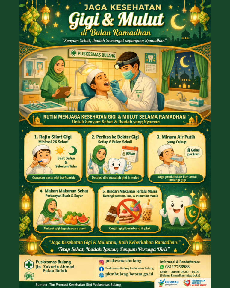 Puskesmas Bulang mengajak seluruh masyarakat untuk menerapkan Perilaku Hidup Bersih dan Sehat (PHBS) serta menjaga sanitasi lingkungan rumah. Kebiasaan sederhana...
