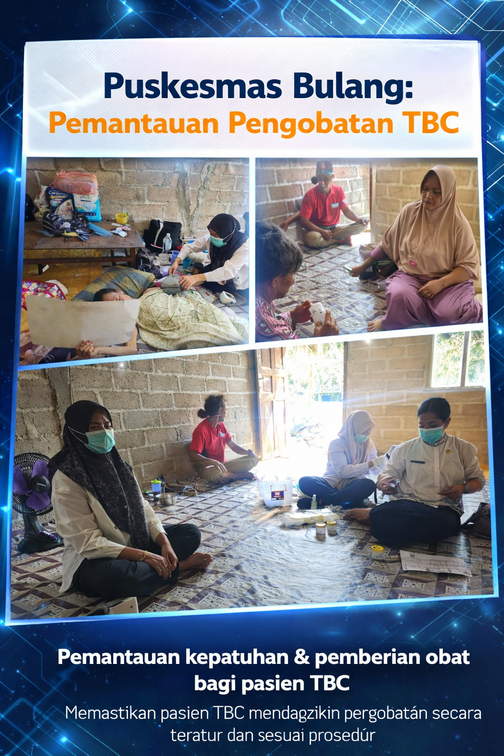 Dalam upaya meningkatkan derajat kesehatan masyarakat, Puskesmas Bulang secara aktif melaksanakan kegiatan pemantauan pengobatan Tuberkulosis (TBC) melalui kunjungan langsung ke rumah pasien. Kegiatan ini bertujuan untuk memastikan pasien menjalani pengobatan secara teratur, tepat dosis, dan sesuai dengan standar pelayanan kesehatan yang berlaku.